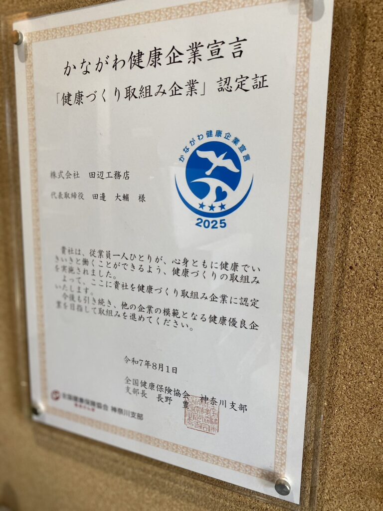この度、田辺工務店では「健康経営優良法人2026」の認定取得へ向け、