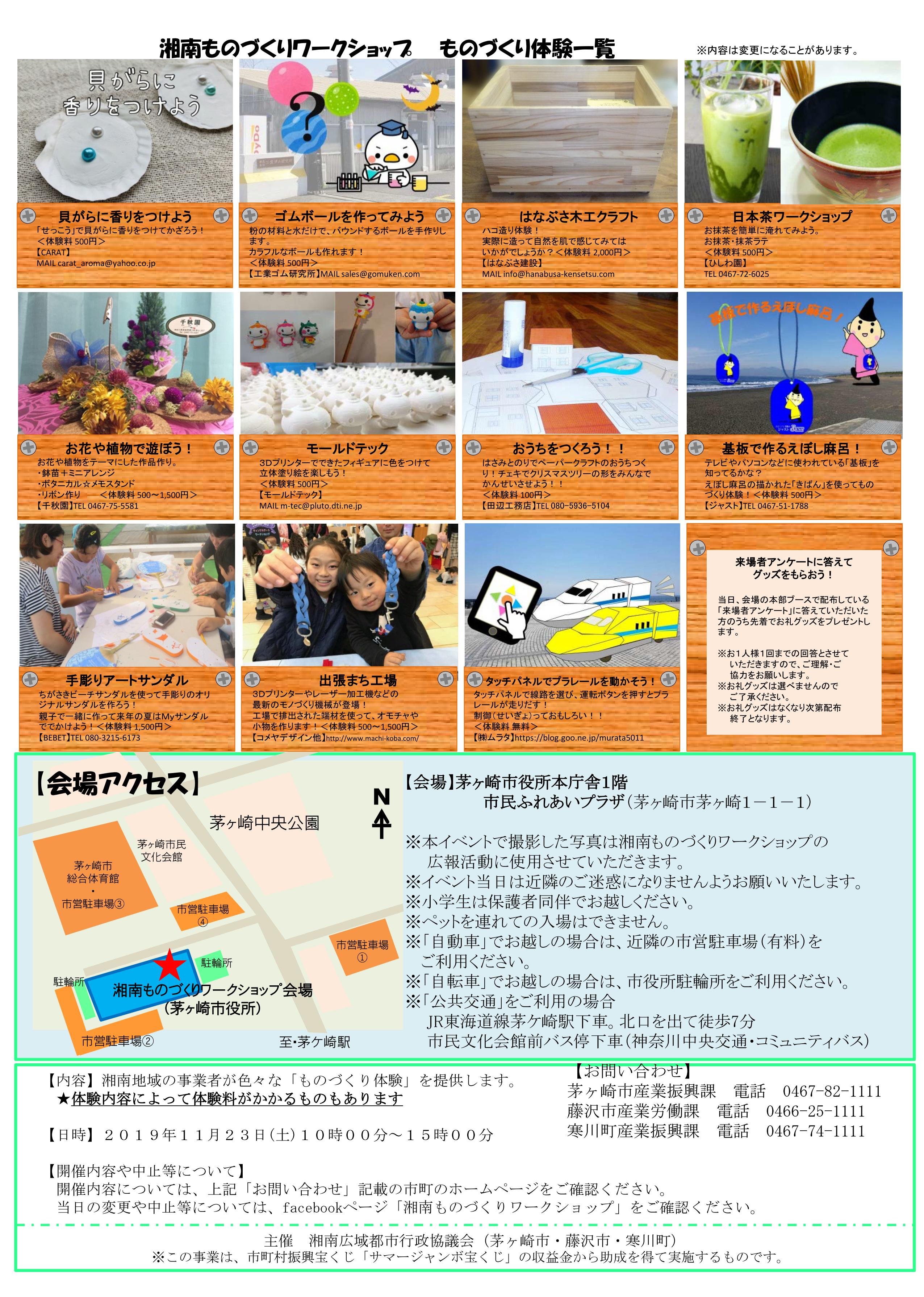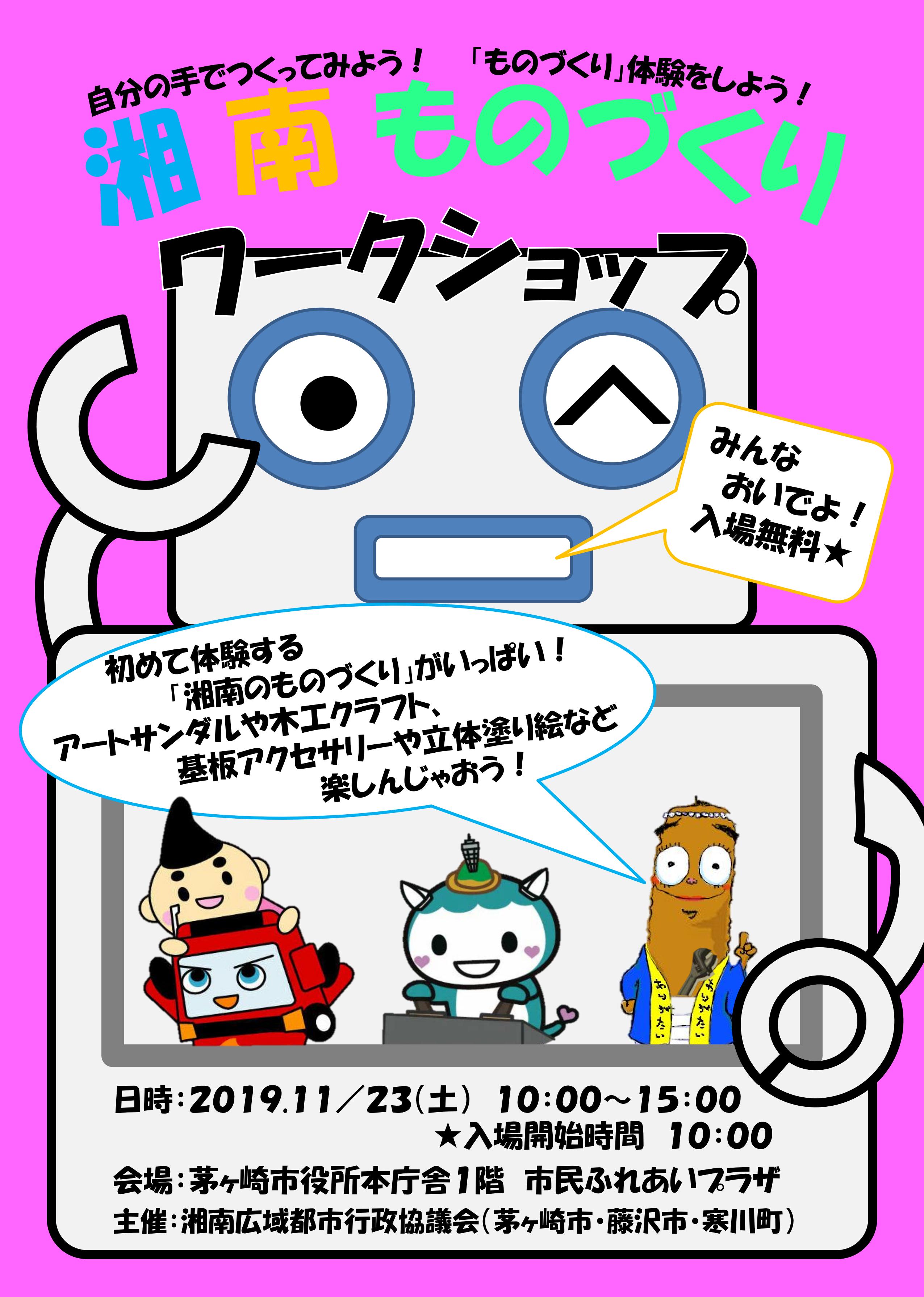 11月23日(土曜日)に茅ヶ崎市役所本庁舎で湘南ものづくりワークショップが開催されます。