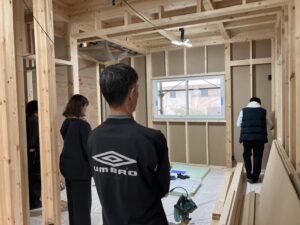 上棟打合せの際には、コンセントや照明の位置なども確認しました。