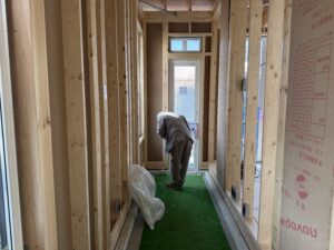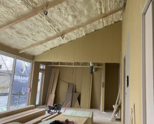 今は、断熱の吹付も終え、着々と完成へ近づいています。