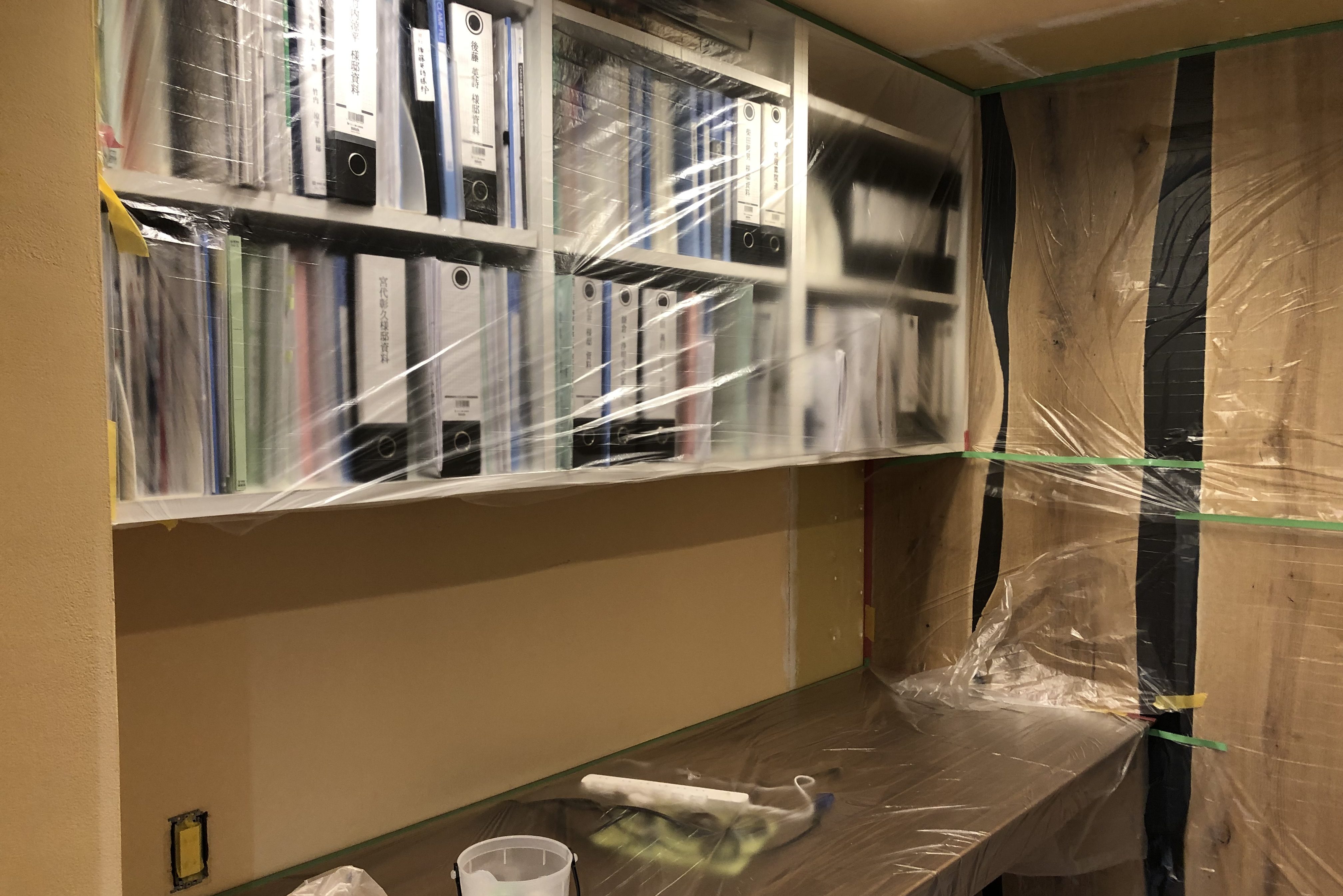 設計室のレイアウトを変更したので、壁・天井の塗り替えをします。