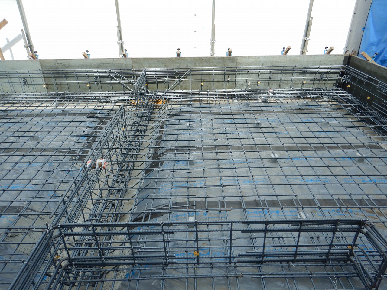 「黒ガルバ×木目×吹き抜け」の配筋が完了しました。