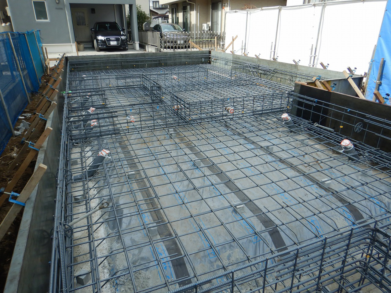 今回はお施主様の希望で基礎の立ち上がり上下をダブル配筋とし、基礎の強度をより高めて施工。