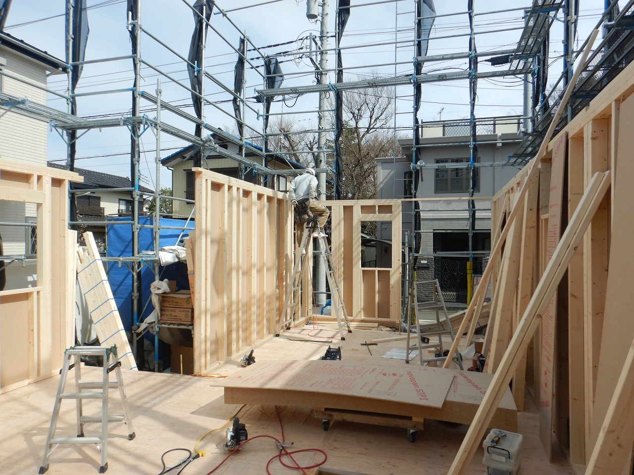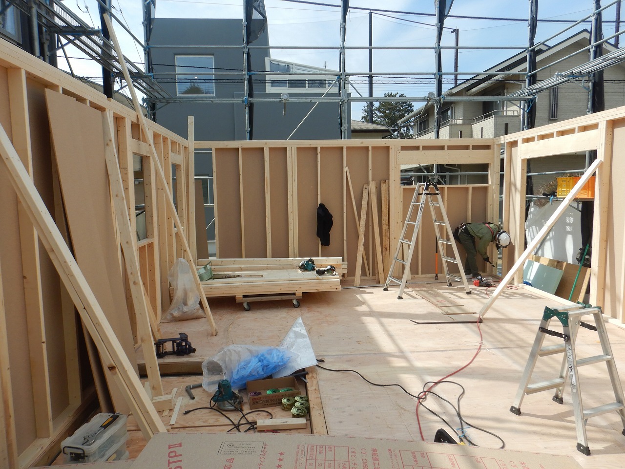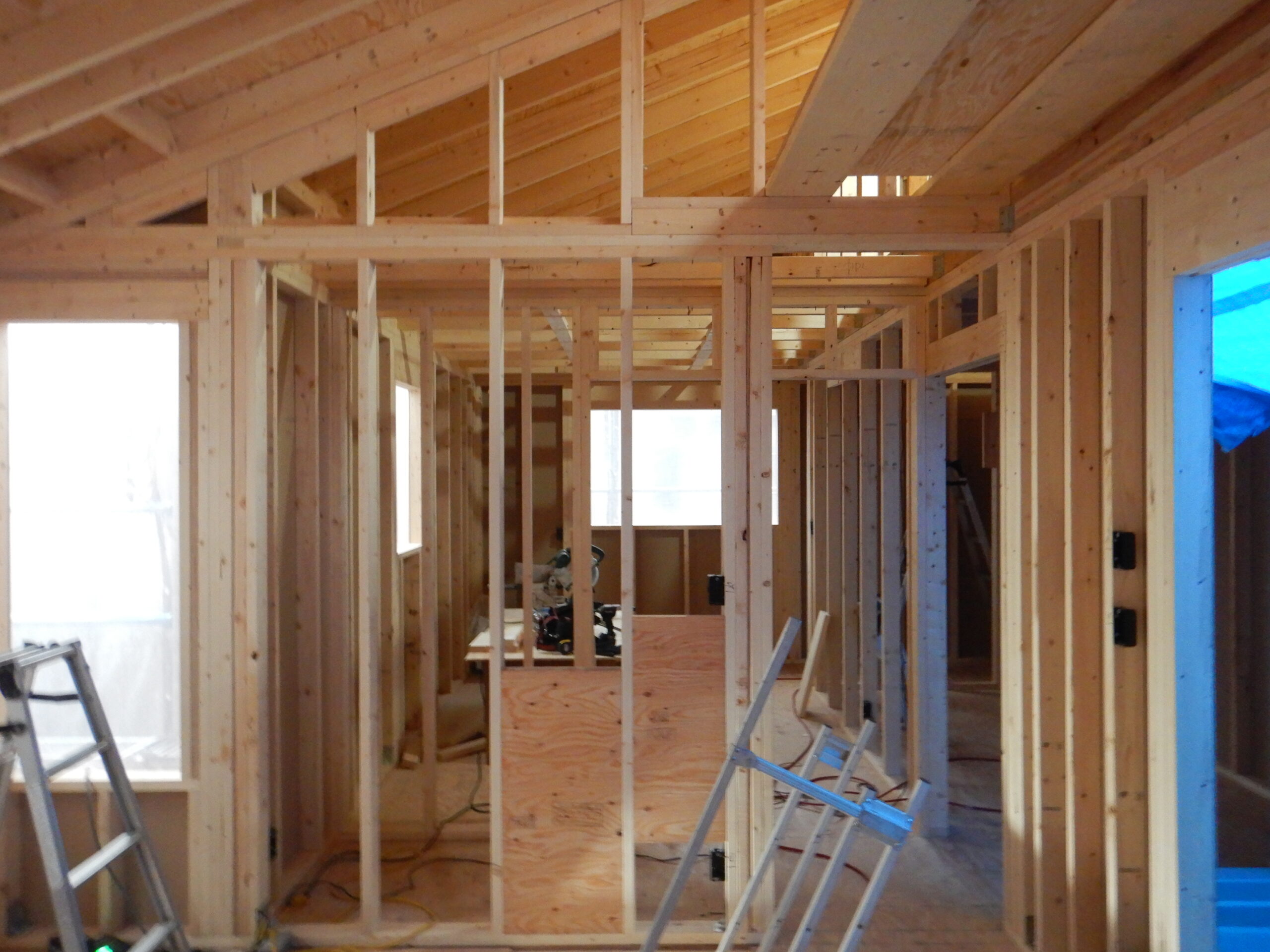 今回は大工さんが二人だったので、あっという間に上棟となりました。