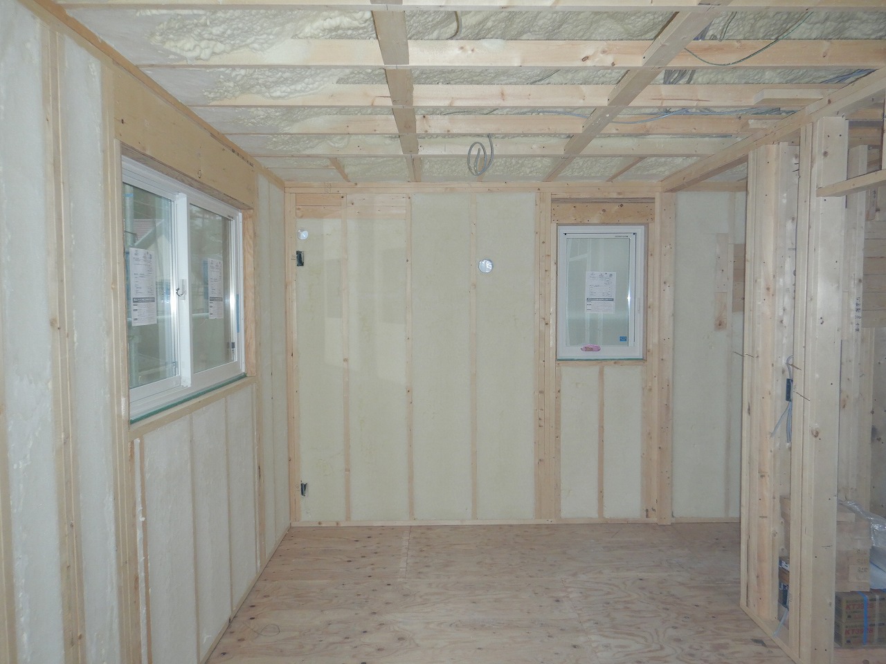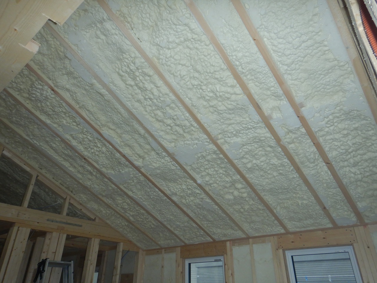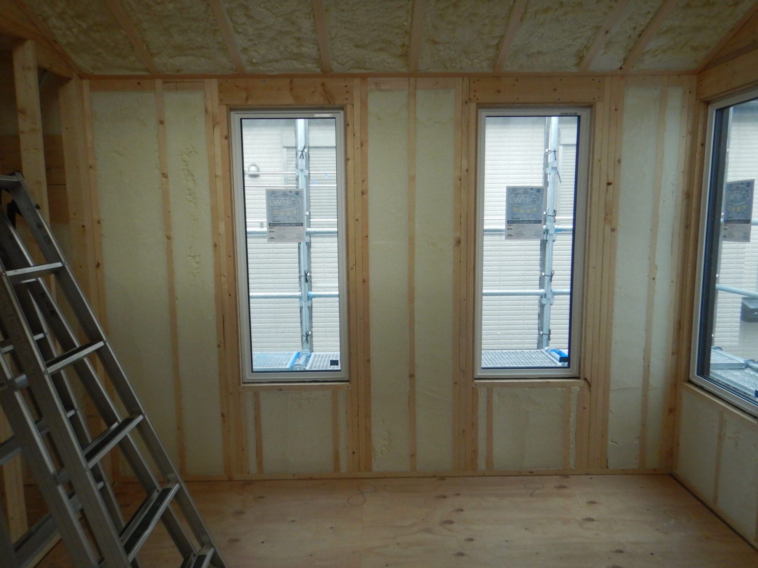 「黒ガルバ×木目×吹き抜け」のウレタン断熱工事が完了しました。